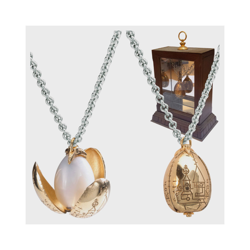 This pendant features a miniature gold-plated Golden Egg with petals that bloom open. The Golden Egg, as seen in Harry Potter and the Goblet of Fire (2005), is an important clue won by participants of the Triwizard Tournament in their First Task.