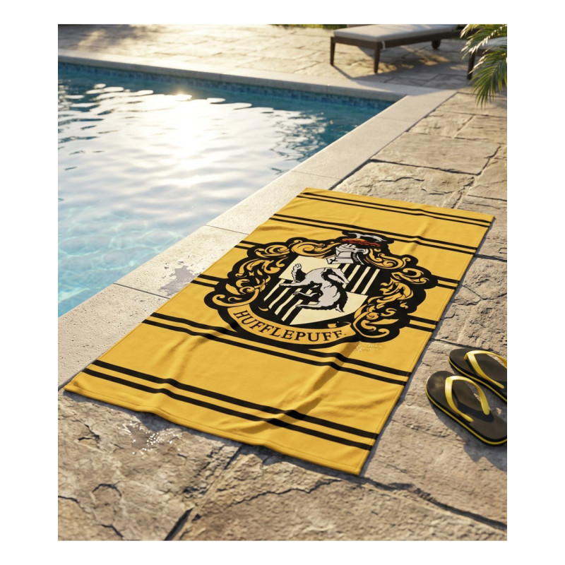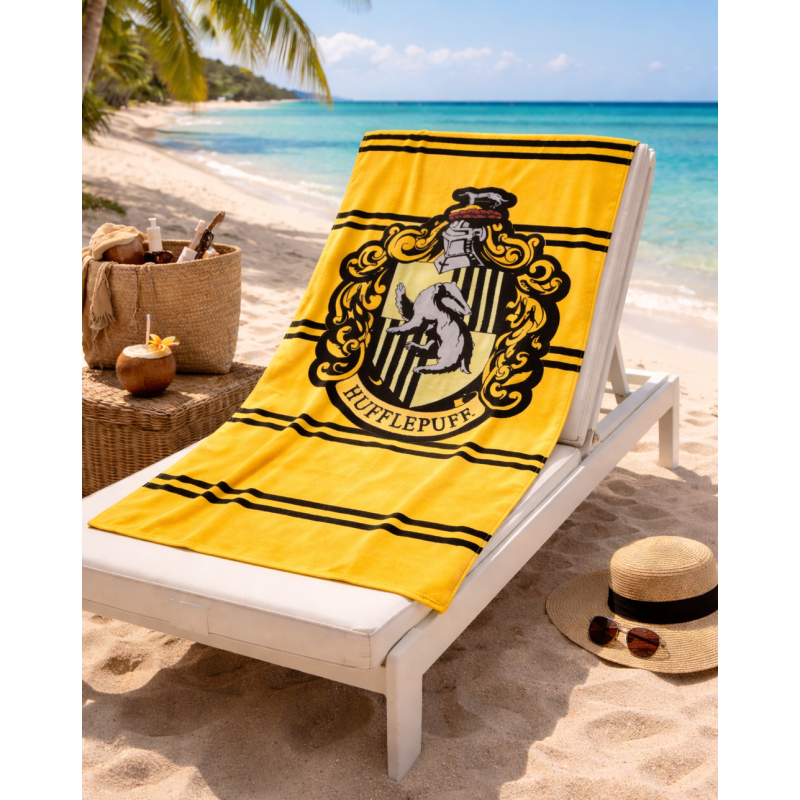 Featuring the iconic black and gold colours and the proud Hufflepuff crest, this soft, absorbent towel brings a touch of magic to bath time, beach days, or poolside lounging.