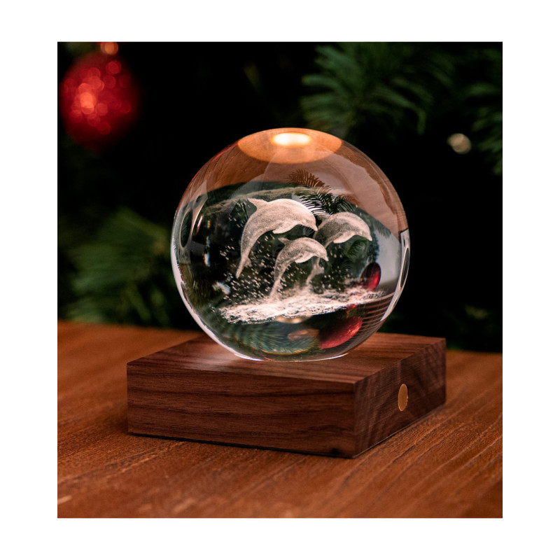 With a height of 12cm, the crystal ball pieces sit on natural walnut wood base to complement your interior design.