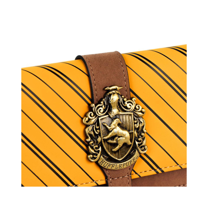 Crafted from high-quality faux leather, it features the classic yellow and black Hufflepuff colours emblazoned on the front, showcasing your house pride with subtle elegance.