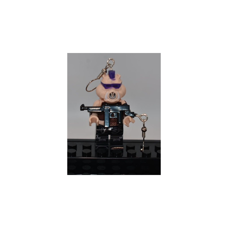 A twin pair of earrings with a figurine of the mutant pig, Bebop, from TMNT.