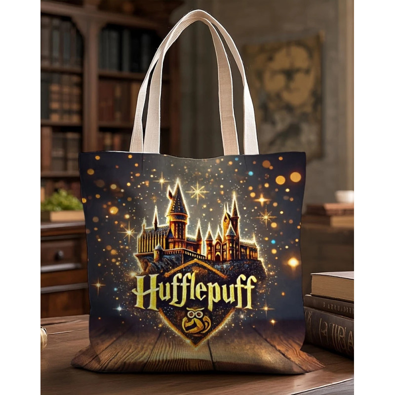Made from a durable hemp material, the bag depicts a great picture of Hogwarts with Hufflepuff placed across it.