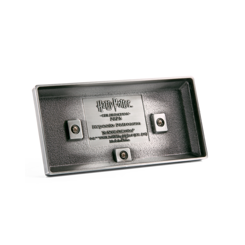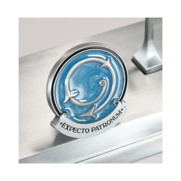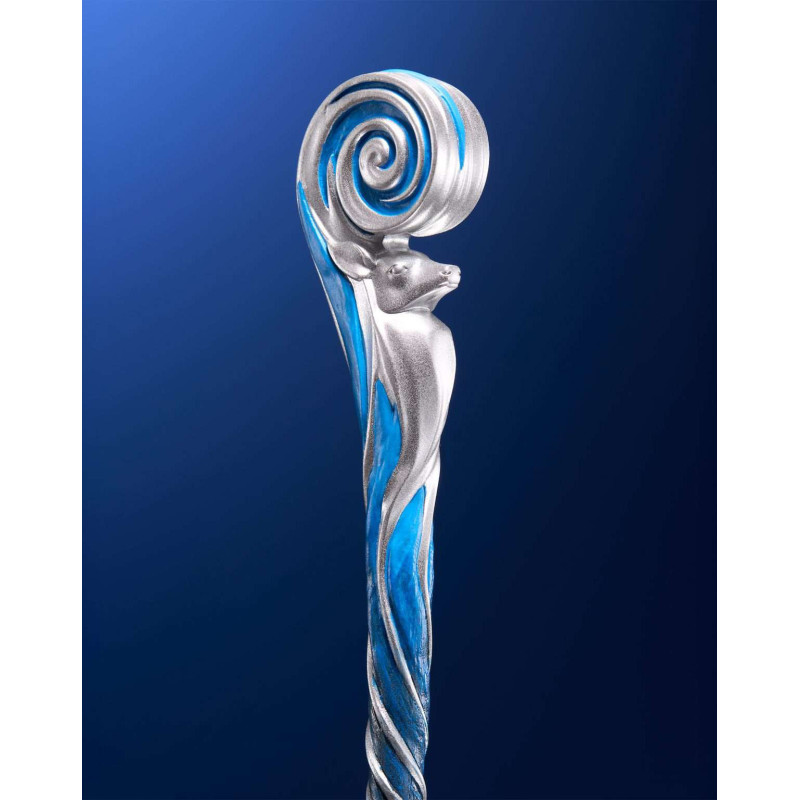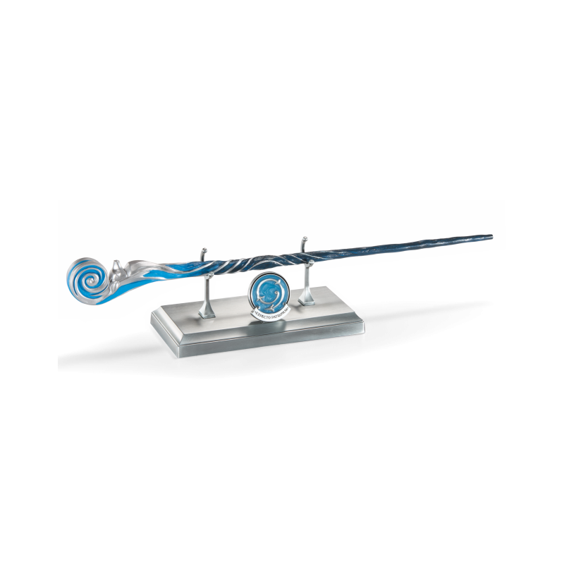 Display it proudly with the included metal die cast wand stand and exclusive Patronus Charm pin, enameled in blue and silver and cast with a spiral design that replicates the hand movement required to cast the charm.