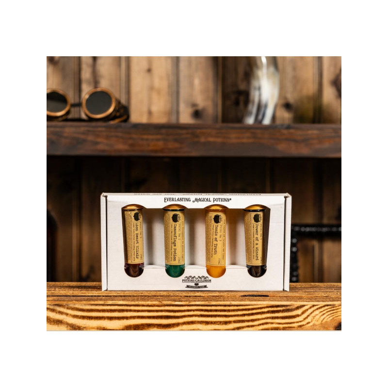 A collection of four magical potion phials, they can be mixed with water, slush, lemonade or something stronger for adult wizards.